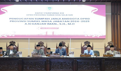 PALEMBANG, BS – Dewan Perwakilan Rakyat Daerah (DPRD) Provinsi Sumatera Selatan (Sumsel) menggelar rapat paripurna ke-XIX yang memiliki agenda khusus, yaitu pelantikan anggota dewan baru. Rapat ini dilaksanakan pada Rabu (20/08/25) di Gedung DPRD Sumsel dan dipimpin langsung oleh Ketua DPRD Sumsel, Andie Denaldie.Dalam acara tersebut, Ganjar Iman, S.H., M.H., secara resmi dilantik sebagai anggota DPRD Sumsel, menggantikan posisi yang kosong.
