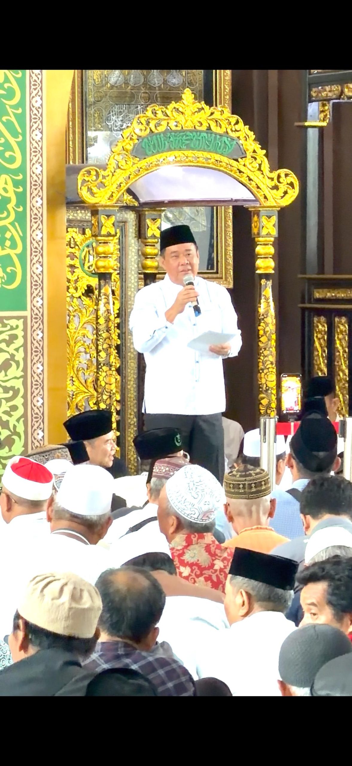 Palembang – Wakil Gubernur Sumatera Selatan (Sumsel), H. Cik Ujang, menghadiri kegiatan Yasinan dan tahlil dalam rangka mengenang 40 hari wafatnya mantan Gubernur Sumsel periode 2008–2018, Alex Noerdin. Kegiatan tersebut berlangsung di Masjid Taqwa, Minggu (5/4/2026) pagi.Dalam kesempatan itu, Cik Ujang menegaskan bahwa kehadiran para hadirin, termasuk masyarakat, merupakan bentuk penghormatan sekaligus ungkapan doa dan cinta kepada almarhum.